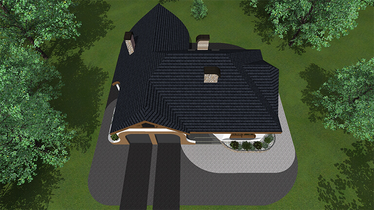 Lotos to średniej wielkości dom jednorodzinny, parterowy, z poddaszem użytkowym oraz wbudowanym garażem z jednym stanowiskiem na auto oraz drugim przeznaczonym na rowery. Budynek zaprojektowany jest dla rodziny 4 osobowej. Część dzienną parteru tworzą m.in. pokój dzienny z wyjściem na taras, a także wydzielona kuchnia z przyległą do niej spiżarnią. Na parterze znajduje się także łazienka i oddzielnie niewielka toaleta. Funkcję rekreacyjną spełnia dobrze wkomponowany taras wypoczynkowy, gdzie w pobliżu zlokalizować można grill. Przy holu zaprojektowano wnękę na szafę, która zapewne pomoże w utrzymaniu porządku. Na poddaszu zorganizowano trzy sypialnie, a także wspólną łazienkę, schowek i garderobę.